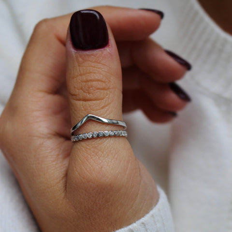 Une bague, deux looks! D’un côté, elle est ornée d’un “V” lisse pour un look classique et de l’autre, un “V” orné de zircons pour un look plus chic. Matériau:...